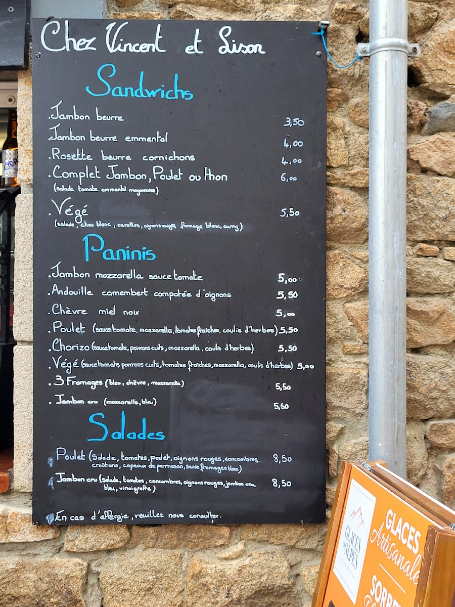 The menu at Chez Vincent Et Lison offers a delightful blend of traditional French cuisine with a focus on local ingredients and flavors. For dessert lovers, the Kouign Amann stands out as a must-try, with its perfectly caramelized, buttery layers that provide a rich and indulgent finish to any meal. Another standout is the Gâteau Aux Pommes de Mamé, a comforting apple cake that evokes nostalgia with its simple, yet elegant flavors. The Financier, a light and delicate almond cake, is ideal for those who prefer something less sweet but equally satisfying. To round off the dessert selection, the Riz Au Lait Caramel brings a velvety rice pudding with a luscious caramel sauce, offering a warm and comforting treat. Whether you're indulging in these delectable desserts or enjoying other dishes, the menu at Chez Vincent Et Lison delivers an experience that combines the best of French culinary traditions.